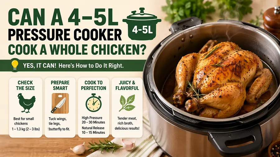 Can a 4–5L pressure cooker cook a whole chicken?