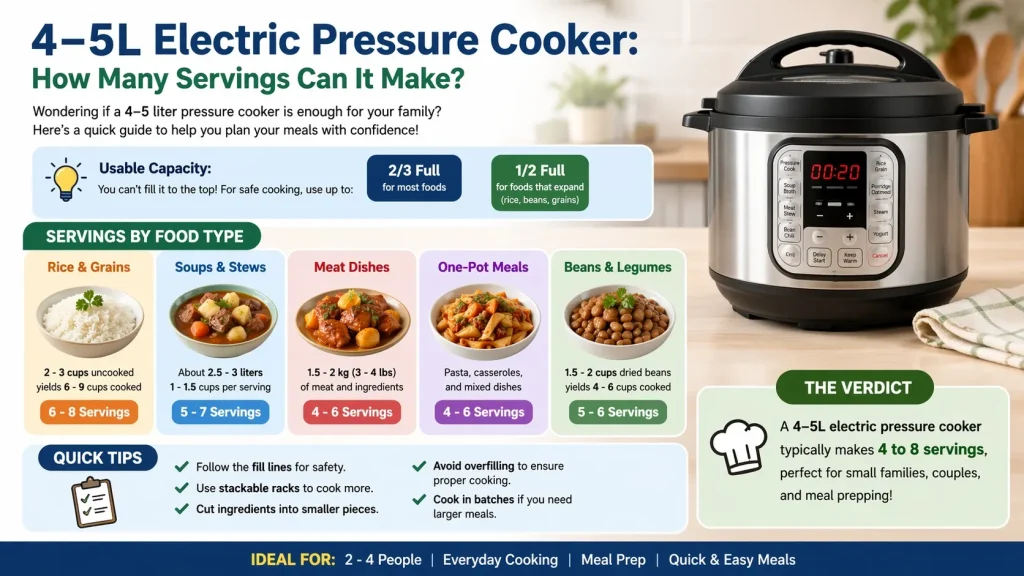 So, how many servings does a 4–5L electric pressure cooker hold?