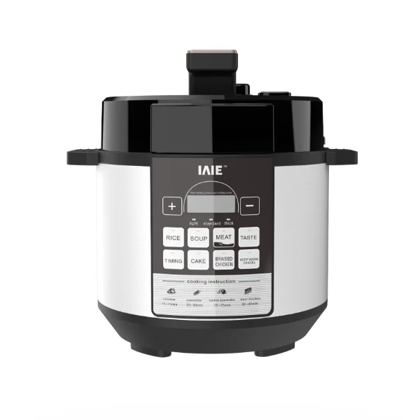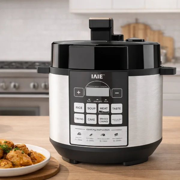 The IAIE Compact Electric Pressure Pot combines style and practicality, featuring a one-touch exhaust button located conveniently on the right side for easy operation. The pot cover and body are integrated into a sleek, large panel design that offers a modern look while enhancing usability. Its personalized handle design not only adds aesthetic value but also provides a comfortable grip for safer handling. Compact in size yet powerful in performance, this pressure pot is perfect for small kitchens, apartments, or anyone who values both space-saving and efficient cooking.